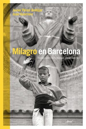 Milagro en Barcelona es un libro instantáneo que está hecho de las instantáneas del fotógrafo Joan Guerrero y del texto, también instantáneo, del escritor Javier Pérez Andújar, pues lo que aquí se recoge es eso, el instante de la vida. ¿Pero de qué vida? La de la gente que la hace sin que se la tenga en cuenta, muchas veces ni siquiera administrativamente. Hombres y mujeres venidos de China, de la India, de Pakistán, de cualquier parte del mundo..., aparecen aquí retratados en su vida diaria, en su estar en la calle. De algunos se explican sus problemas particulares y de todos se pretende mostrar su problemática general, que es la eterna cuestión, el infinito rompecabezas de quien ha decidido o ha necesitado emigrar. En un explícito homenaje en su título a Milagro en Milán de Vittorio de Sicca, los dos autores de este libro atraviesan codo con codo las orillas, los límites, las fronteras urbanísticas de la ciudad, para transgredir así las fronteras sociales. Todo esto, en el más bello y doloroso blanco y negro, escrito, como no podía ser de otra manera, negro sobre blanco.