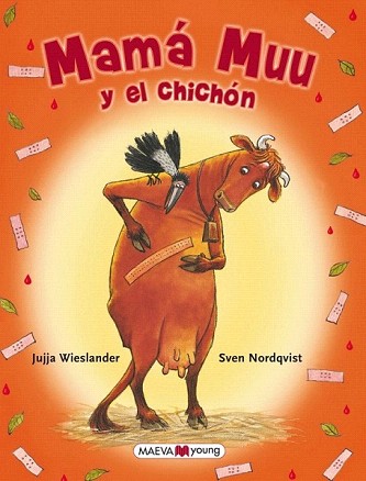 Deseando como siempre hacer todo lo que hacen los niños, Mamá Muu se dispone a saltar la valla del prado para ir a darse un chapuzón. Pero al ir a saltar… ¡Uy, qué daño! Se hace un arañazo en la tripa y un chichón en la frente. El granjero le pone una tirita gigante en la barriga, pero necesita algo...