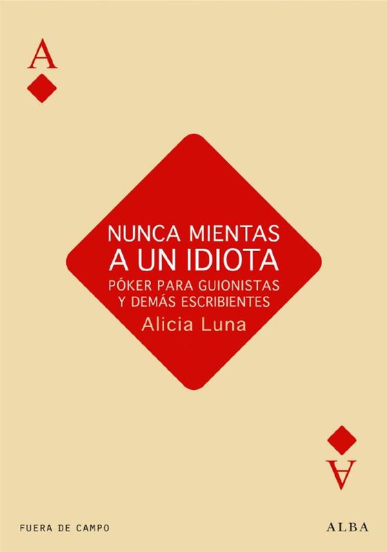 ¿Qué esperas encontrar en Nunca mientas a un idiota? ¿Comedia romántica? ¿Autoayuda? ¿Y si el libro lleva impreso el subtítulo Póker para guionistas y demás escribientes? Este libro tiene algo de juego porque a escribir guiones también se aprende jugando, poniendo al máximo nuestra capacidad de ser originales, diferentes. Aprendiendo a defender una idea como si se tratara de una peligrosa jugada de póker: dobles parejas contra quien sospechas que lleva una pareja de ases. Escribir guiones supone generar tramas arriesgadas y a la vez verosímiles para los personajes que inventamos. Pero ¿cómo vas a crear un gran personaje sin saber el tipo de escritor que eres? ¿Arriesgado o convencional? ¿Astuto o ingenuo? Empecé siendo una jugadora calling station, de esas que juegan muchas manos porque no saben muy bien a que están jugando y me he convertido en una jugadora gambler, a la que le gusta arriesgar porque le gusta jugar. Igual ante la página en blanco. Ahora valoro tanto mi trabajo de guionista que quiero escribir para sorprenderme y sorprender a los demás.
