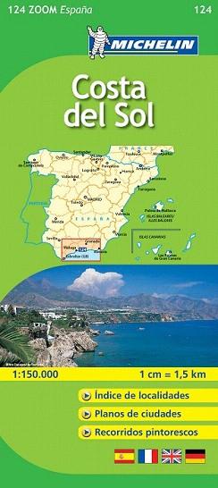 El Mapa Zoom Costa del Sol, editado a escala 1/200 000, presenta la leyenda en cuatro idiomas (castellano, alemán, francés e inglés), índice de localidades y contiene los planos de Algeciras, Almería, Granada, Málaga y Marbella.