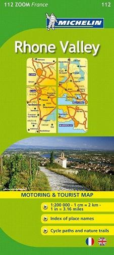 El Mapa Zoom Rhone Valley, editado a escala 1/200 000, presenta la leyenda en dos idiomas (francés e inglés), índice de localidades y señalización de pistas para bicicletas y vías verdes.