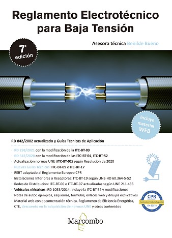 Reglamento más actualizado del mercado. Versión consolidada según el RD 560/2010 de adecuación a la Ley Ómnibus, el RD 1053/2014 que incluye la ITC-BT-52 sobre puntos de recarga de Vehículos Eléctricos, el Reglamento Europeo de Productos de la Construcción (CPR), el RD 244/2019 sobre autoconsumo, el RD 542/2020 y el RD 298/2021 que modifi ca la ITC-BT-03. Incluye actualización de las Intensidades máximas admisibles de la ITC-BT-19 sobre Instalaciones de Interior conforme a la nueva norma UNE-HD 60.364-5-52. ITC-BT-06 e ITC-BT-07 sobre Redes de Distribución conforme UNE 211.435, en relación al cálculo de conductores en líneas eléctricas aéreas y subterráneas. Se aplica en el REBT la Resolución de 9 de enero de 2020, por la que se actualiza el listado de normas de la instrucción técnica complementaria ITC-BT-02. Además, este libro con.. ene: · Resumen y actualización de normas UNE ITC-BT-35 ?Establecimientos agrícolas y hor.. colas?. ITC-BT-39 ?Cercas eléctricas para el ganado?. ITC-BT-41 ?Caravanas y parques de caravanas?. ITC-BT-42 ?Puertos y marinas?. ITC-BT-50 ?Saunas?. Para las instrucciones mencionadas el REBT se remite a una norma UNE que resulta necesario conocer. · Resumen de la Guía Técnica de aplicación del REBT No .. ene carácter vinculante. Establece aclaraciones a conceptos del REBT tal y como indica el ar.. culo 29 del mismo. Esta edición con.. ene un resumen de la Guía Técnica de aplicación actualizada, con los datos más importantes. Se incluye en el Material Web el texto completo de la Guía Técnica de aplicación publicada en el BOE. · Aclaraciones, resúmenes, ejemplos, esquemas, fórmulas, enlaces web y dibujos Con obje.. vo de agilizar la comprensión de la norma y encontrar de una manera rápida los datos más relevantes, se subraya el texto y se incluyen notas y fi guras de autor. Se incluye en el Material Web el REBT y las ITC publicadas en el BOE. · Vehículos Eléctricos Nueva ITC-BT-52 y Real Decreto 1053/2014 por el que se establecen los requisitos y condiciones técnicas básicas de la infraestructura necesaria para posibilitar la recarga efec.. va y segura de los Vehículos Eléctricos. · Material WEB Redireccionamiento a páginas webs de interés donde poder descargar recursos y norma.. vas, tramitar documentación técnica de las diferentes Comunidades Autónomas y otros contenidos. Además, en la parte inferior de la primera página del libro encontrará el código de acceso que le permi.. rá acceder de forma gratuita al material web adicional del libro en www.marcombo.info.