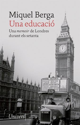 Els quinze episodis d'Una educació retraten -en forma de memoir- les preocupacions i despreocupacions d'un jove català a Londres durant la dècada dels setanta. En el seu llibre més personal, Miquel Berga evoca, amb ironia i compassió, les peripècies d'un jove sense recursos que aprèn a viure, i a sobreviure, en un ambient i una cultura percebudes com un refugi amable, lluny de les misèries i turbulències que projectava l'agonia del franquisme i l'inici de la transició. El conjunt de situacions i personatges que transiten pel llibre són la destil·lació d'una educació sentimental, però també una deliciosa recreació de les «hores angleses» d'un català que arriba a Londres de polissó en un avió, però amb la convicció que, en aquell temps, n'hi havia prou amb això: «Tenia vint anys i dos números de telèfon.»