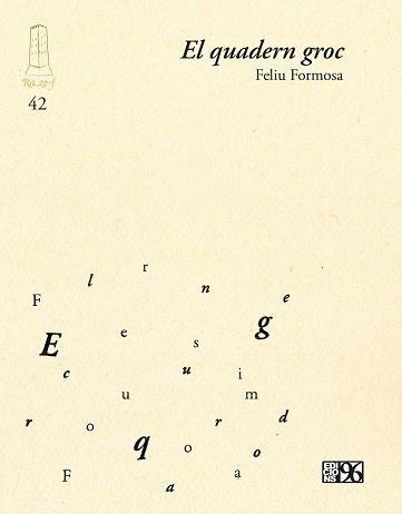 «En Feliu, als noranta anys, ha deslligat les mànigues de la camisa de força i retroba en cada tecla que toca tot allò que en ell mateix ha anat sedimentant al llarg d'una vida tan llarga.» Ho diu en Joan Casas al pròleg d'El quadern groc. Un poemari en format plaquette que aplega vint-i-sis poemes, un per cada lletra de l'alfabet, que els intitula. Casas també en celebra el caràcter juganer i festiu: l’«alegria boja d'un poltre insospitadament jove», per ser exactes. Hi trobareu, en resum, una mostra del Formosa més irònic, del més inspirat poeta tocat per la sabadellenca gràcia.